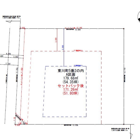 | 土地面積 | 179.68m² (54.35坪)※セットバックが必要 |
