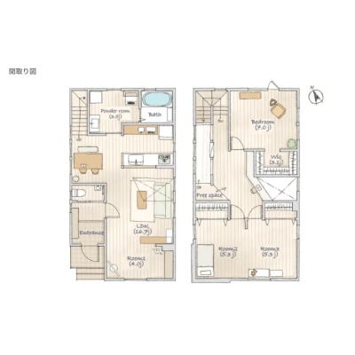 | 間取り | 4LDK1階:LDK 洋室 / 2階:洋室 洋室 洋室 |