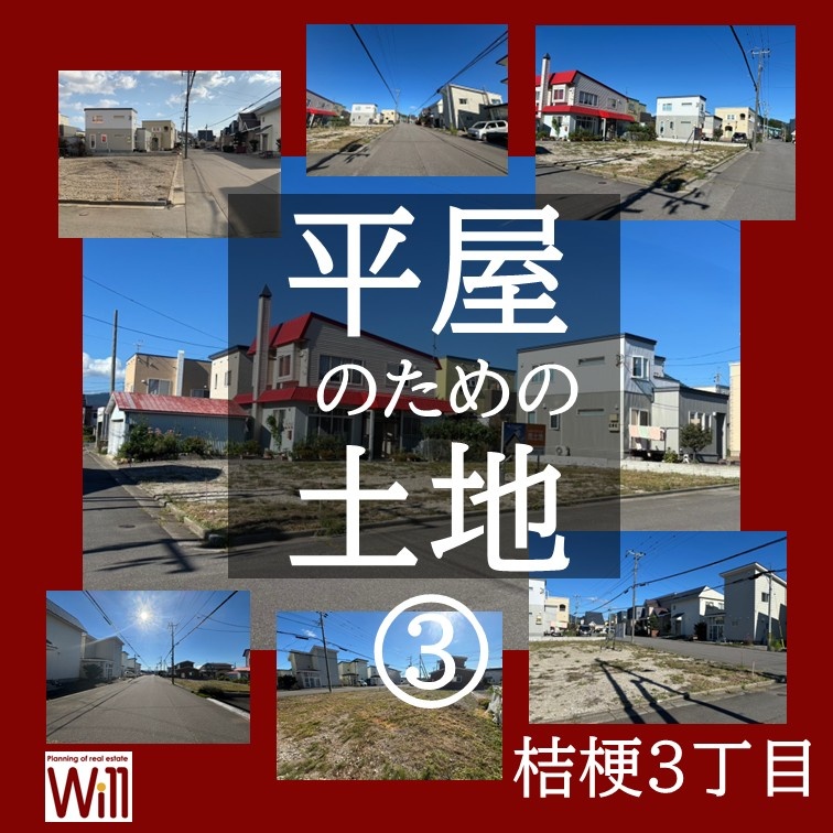 ここに注目!【平屋を建てやすい土地から考える家づくり】桔梗3丁目76坪◆「平屋を建てたいけどどのくらいの広さの土地があればいいの?」「どんな土地が平屋に適しているの?」ウィルにお問い合わせいただいた多くの方が感じているこの疑問。 私たちウィルは不動産会社であり建築会社でもあるからこそ、建物の大きさ、日当たり、将来の暮らしまで見据えて平屋が無理なく建てられる条件を備えた土地のご提案から設計・建築・アフターサポートまでワンストップでサポートができるのです!◆【建築条件付土地】⇒弊社ウィルと建物の請負契約を締結していただくことを条件に販売可能な土地です。 ご希望の金融機関や間取りによって調整可能となりますので、一度乃木町のカフェランプスのコーヒーを飲みながらお打合せしてみませんか? ◆少しでも気になる方は、問い合わせフォームまたは不動産企画ウィル(0138-35-6235)までお気軽にご連絡ください! お待ちしております♪