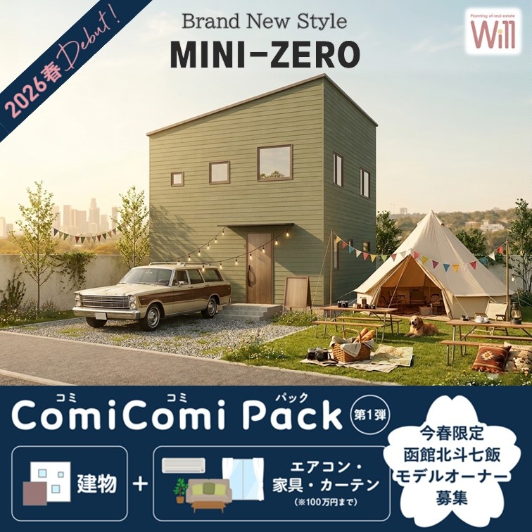 ここに注目!NEW規格住宅MINI-ZEROデビュー記念♪【キャンペーン実施中】今ならエアコン・家具・カーテンの総額100万円分オプションプレゼント🎁※完成後約3か月間モデルハウスとしてお借りすることが条件となります。◆建築費の高騰で「新築はもう無理かもしれない」そう思っていませんか。中古住宅で妥協する前に。価格重視の建売で決めてしまう前に。私たちウィルは“あきらめなくていい新築”をつくりました。3LDK、16.6帖のリビングを中心に6帖×2部屋+5.3帖の個室。家族が自然と集まりそれぞれの時間も大切にできる、ちょうどいいサイズ感。華美な装飾や過剰な設備はありません。でも、暮らしに本当に必要な広さと快適性は、きちんと確保しました。【無駄を省く】【仕組みを整える】規格・注文住宅建築棟数1000棟を達成した当社だからこそできるコストコントロール。これが「価格を抑えた、ちゃんとした新築」です。安さを競う家ではありません。将来まで安心できる住まいを、現実的な価格でご提案いたします。 ◆少しでも気になる方は、不動産企画ウィル(0138-35-6235)までお気軽にご連絡ください! ※記載金額諸費用等除く