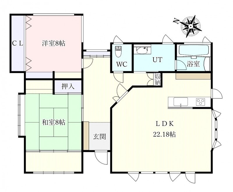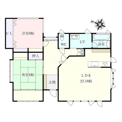 | 間取り | 2LDK1階:洋室8帖 和室8帖 / 2階:LDK22.1帖 |