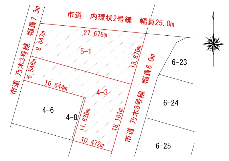- 北側幅25.00mの公道に27.60m接道
