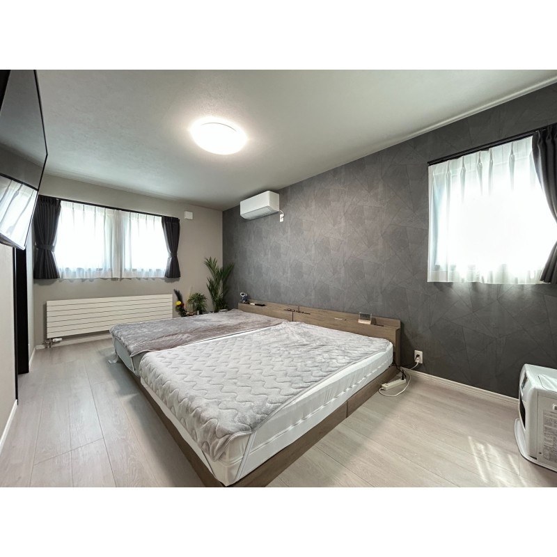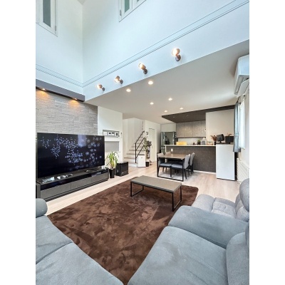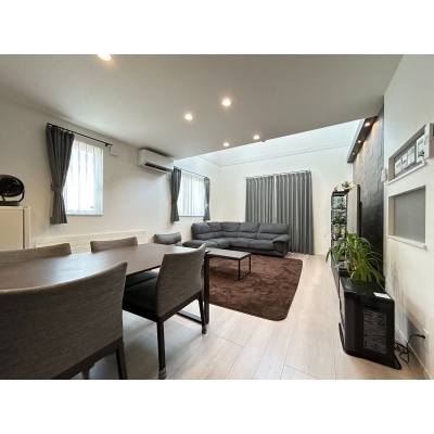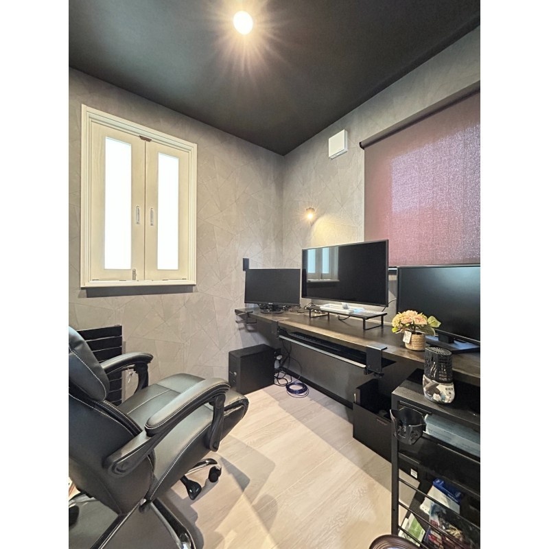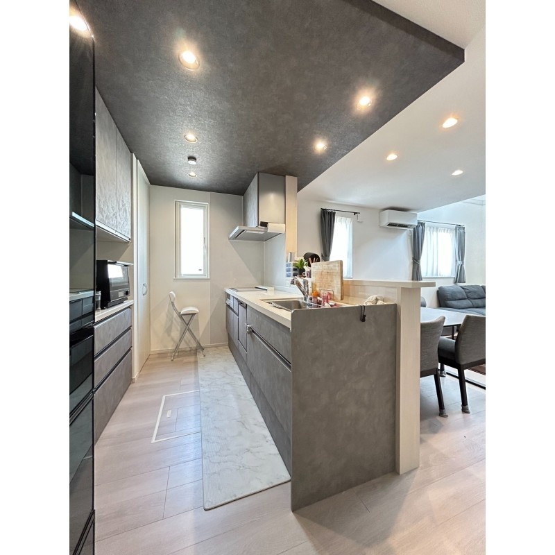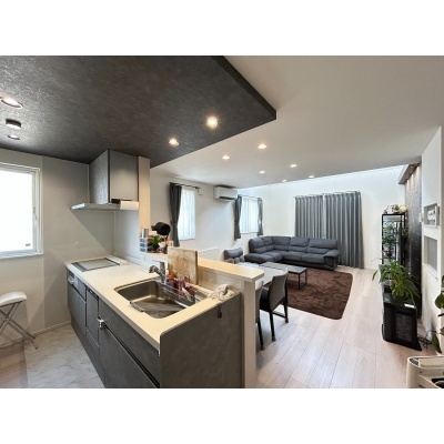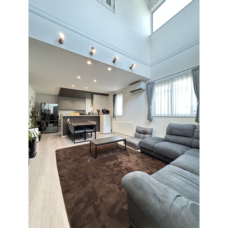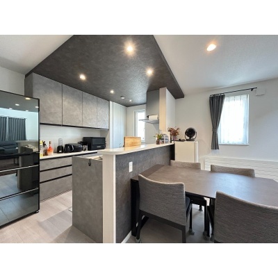 ここに注目!【白と黒が織りなす、上質な日常】白と黒のモノトーンが際立つ、洗練された佇まいの邸宅。美しく配置されたブラックアクセントクロスが空間に深みと表情を加え、上品なコントラストが日常に静かな存在感を与えます。吹き抜けのリビングには柔らかな光が降り注ぎ、天井のシーリングファンが空気とともに時間までも優雅にまわしてくれる。鍵を出すことなく解錠できるスマートな玄関や、車種によって4~6台停められるゆとりある駐車スペースも魅力。徒歩圏に生活施設が揃い、交通アクセスも良好。仕事や趣味に集中できる書斎スペースを備えた4SLDKは、成長する子どもたちとの豊かな暮らしに寄り添います。暮らしに品と快適さを求めるご家族に、ふさわしい住まいです。