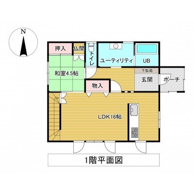 | 間取り | 4LDK1階:LDK16帖 和室4.5帖 / 2階:洋室8帖 洋室7.5帖 洋室7.5帖 |