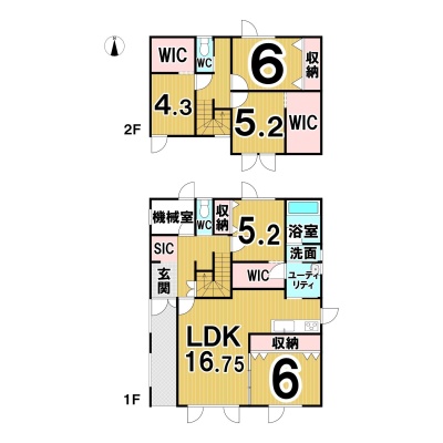| 間取り | 5LDK1階:LDK16.7帖 洋室6帖 洋室5.2帖 / 2階:洋室4.3帖 洋室6帖 洋室5.2帖 |