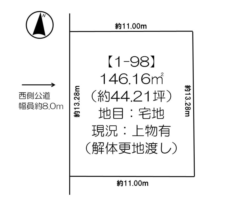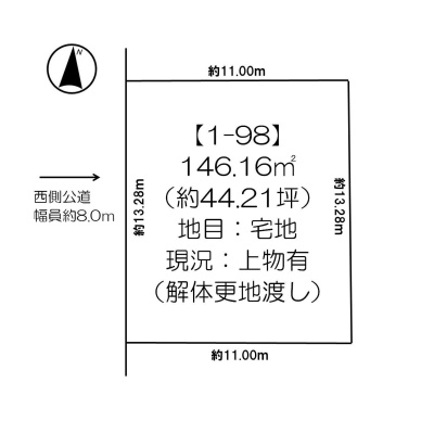 総区画数-/- 接道状況 一方 - 西側幅8.00mの公道に13.28m接道