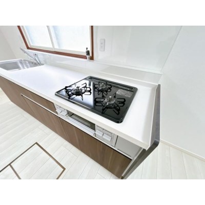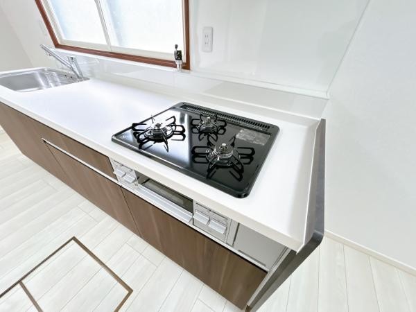 【リフォーム済】新品交換したのキッチンは3口コンロで同時調理