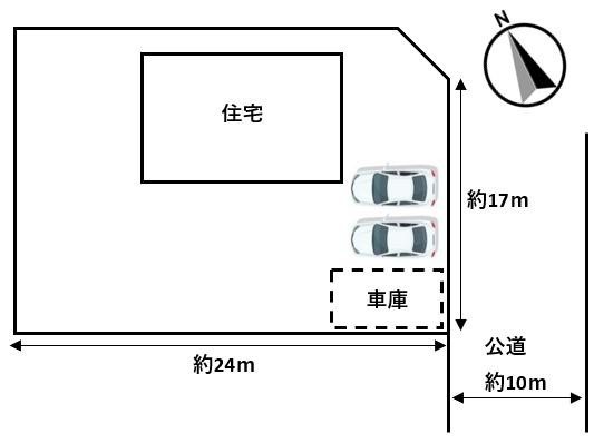 【区画図】普通車3台駐車できます。車庫は電動シャッターです。