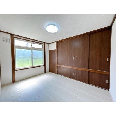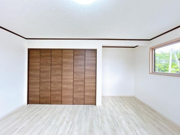 【リフォーム済】2階洋室です。床は木目調のクッションフロアに