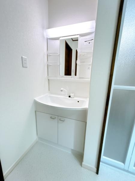 【リフォーム済】新品交換した洗面化粧台の水栓は、お湯と水をき