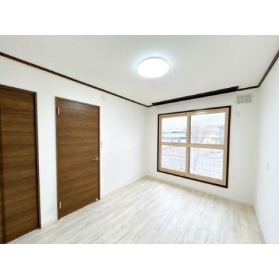 【リフォーム済】2階西側洋室6帖です。床は木目調のクッション