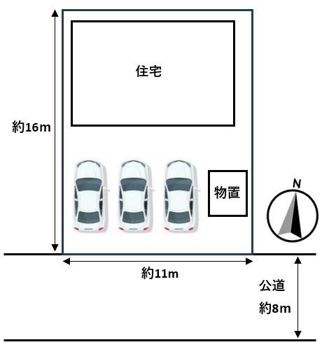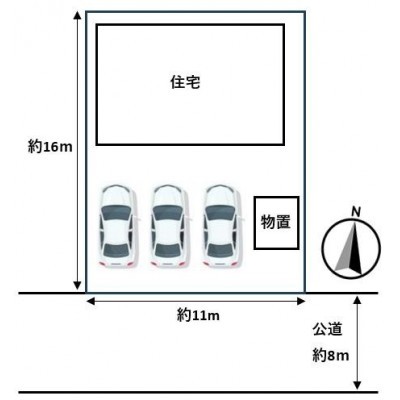 【区画図】駐車場は並列で普通車3台駐車できます。