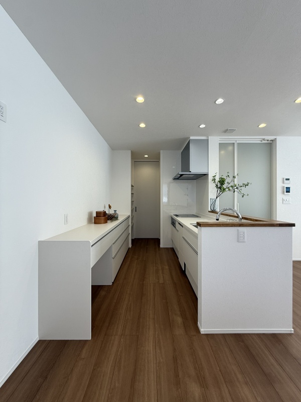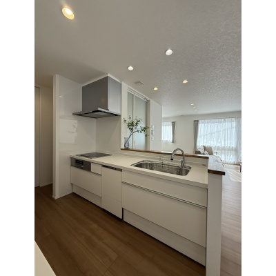 【キッチン】白を基調としたシンプルで明るい対面キッチン