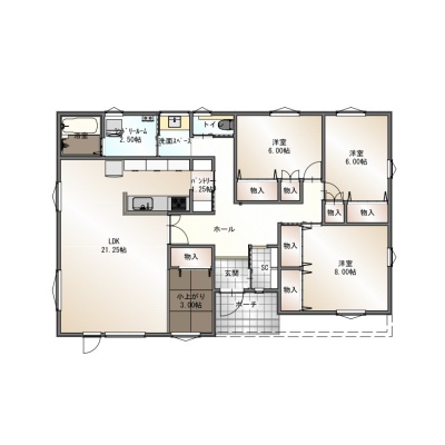 | 間取り | 3LDK1階:LDK21.25帖 洋室8帖 洋室6帖 洋室6帖 |
