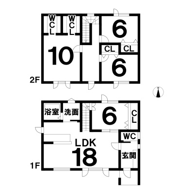 | 間取り | 4LDK1階:LDK18帖 洋室6帖 / 2階:洋室10帖 洋室6帖 洋室6帖 |