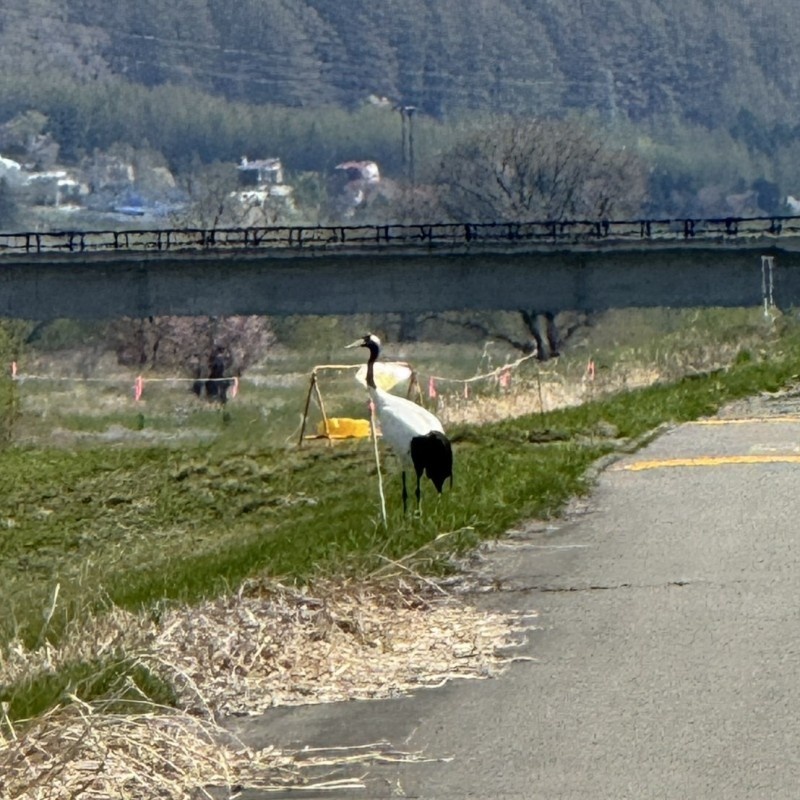裏の堤防にはタンチョウなど飛来。自然豊かな環境です。