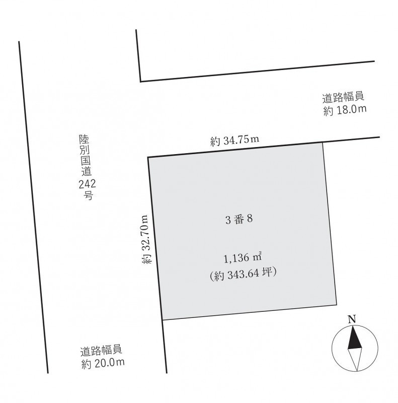 - 北側幅18.00mの公道に34.70m接道