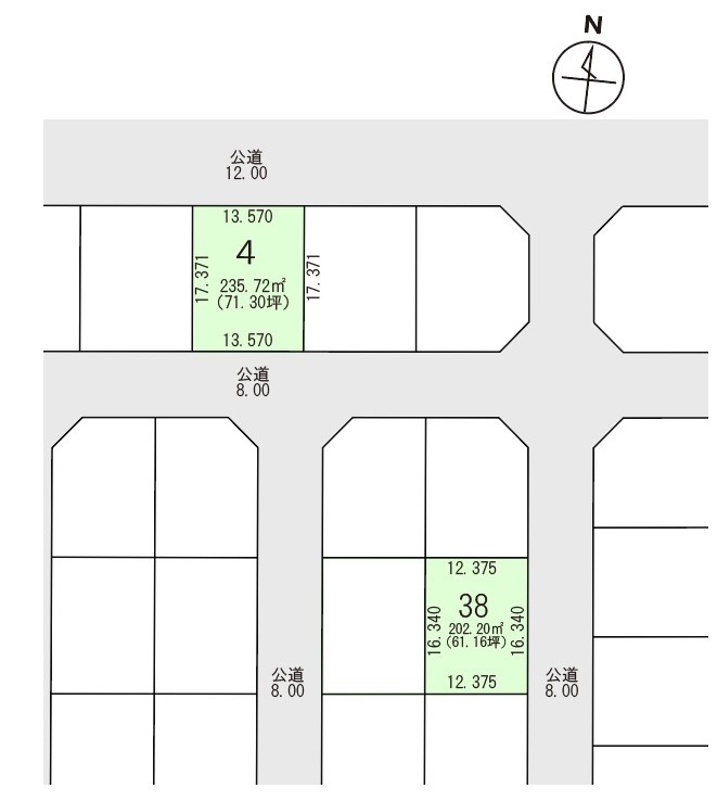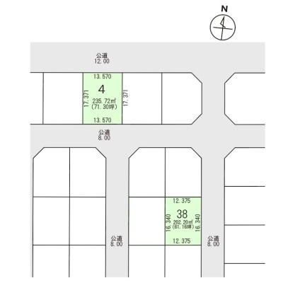 総区画数2区画/全54区画 接道状況 二方(除角地) - 北側幅12.00mの公道に13.50m接道 位置指定:無