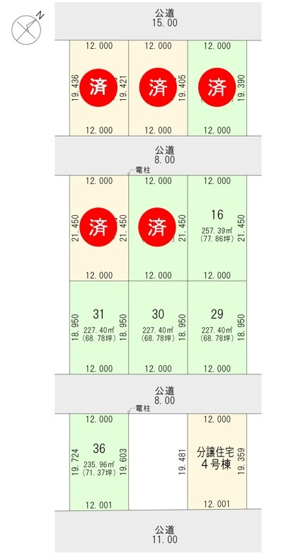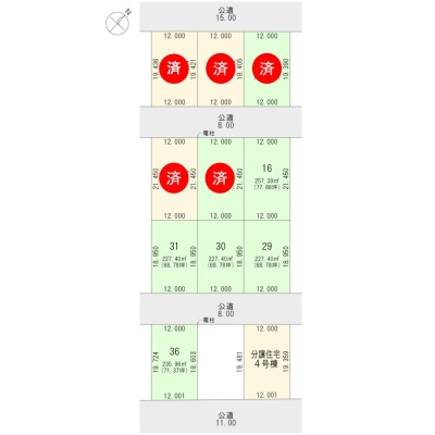 備考 総区画数:44区画 内当社区画数:12区画 総戸数:5戸 販売戸数:1戸 主たる設備の概要:電気/電力供給有、上水道/公営上水道、下水道/公共下水道、ガス/都市ガス その他の費用:なし 学区色がついているアイコンをクリックすると、本物件までの道順を見ることができます。