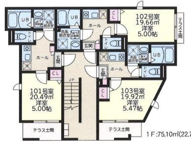 | 面積 | 建物:223.23m² (67.52坪)/ 土地:126.34m² (38.21坪) 専有:24.8m² (7.5坪) |