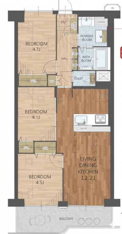 3LDK(61.6m²)