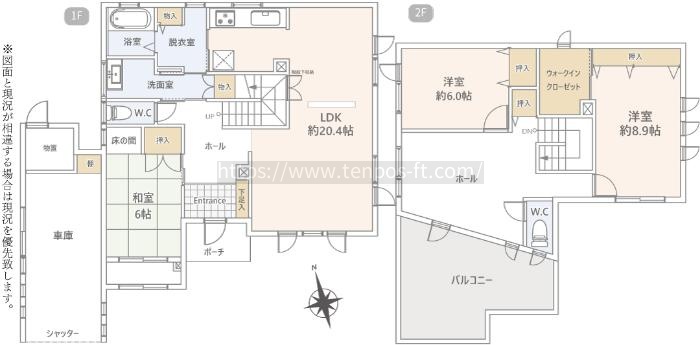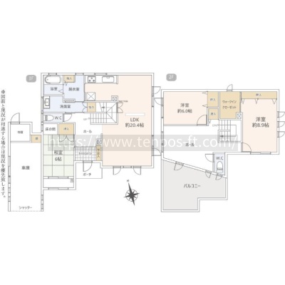 | 間取り | 3LDK和室6帖 洋室8.9帖 洋室6帖 LDK20.4帖 |