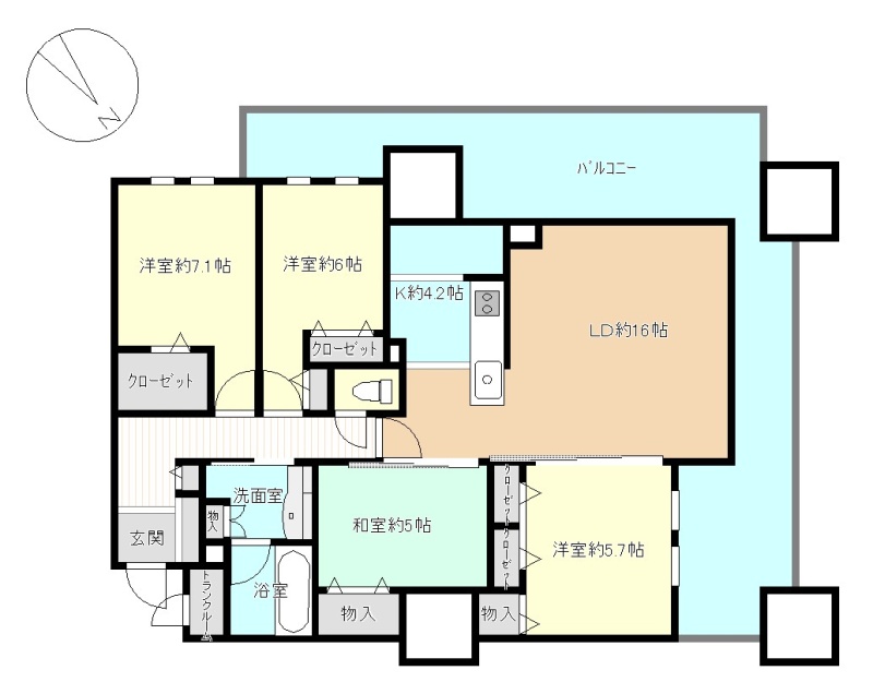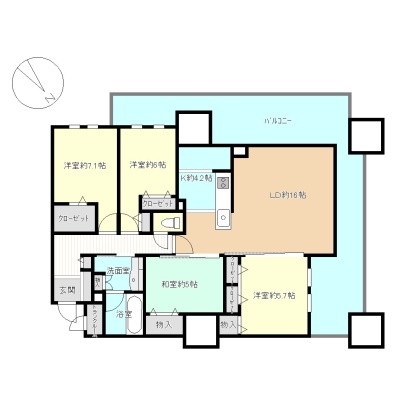 4LDK(100.9m²)└ LDK16帖 洋室7.1帖 洋室6帖 洋室5.7帖 和室5帖