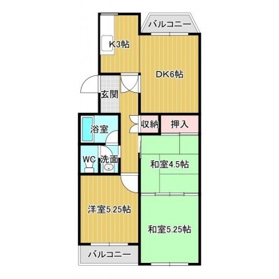 3DK(49.1m²)└ K3帖 DK6帖 洋室5.2帖 和室5.2帖 和室45帖