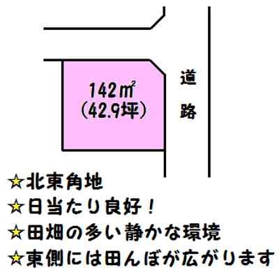 ここに注目!北東角地。周辺は田んぼが広がり、とても長閑です。値下げ250万→90万(R8.3.7)