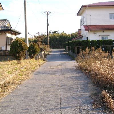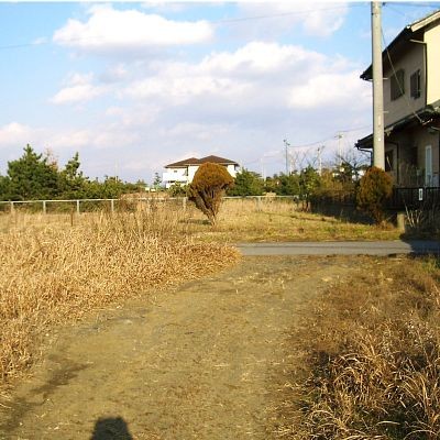 前面道路、右側が土地です