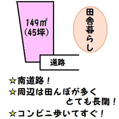 ここに注目!南道路!周辺は田んぼが広がる長閑な環境。セブンイレブン約350m。