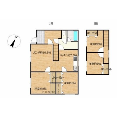 【リフォーム後間取り図】1階2部屋、2階2部屋の4LDKの住