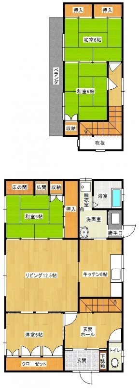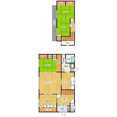 | 間取り | 4LDK1階:K6帖 和室6帖 洋室6帖 和室6帖 / 2階:L12.5帖 和室6帖 |