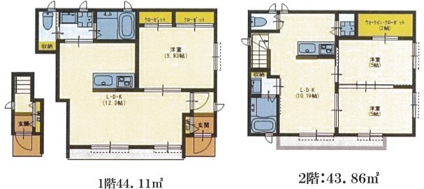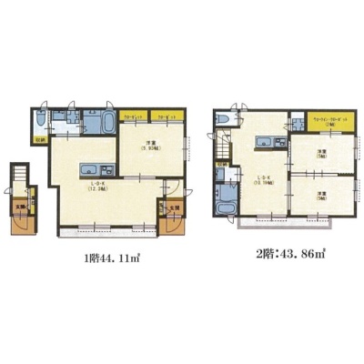 | 面積 | 建物:87.97m² (26.61坪)/ 土地:63.3m² (19.14坪)(公簿) 専有:最小43.86m² (13.26坪)~最大44.11m² (13.34坪) |