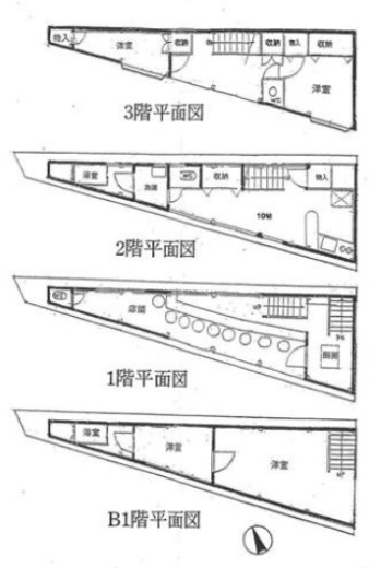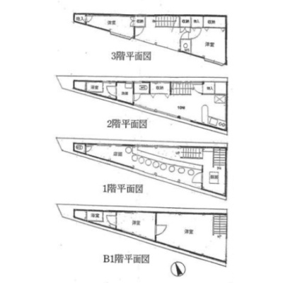 建物の階建 地上3階 地下1階建 間取り 1K×2戸、その他×1戸 駐車場 なし接道状況 一方 - 南側幅25.00mの公道に14.45m接道
