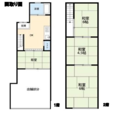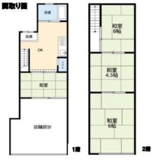 建物の階建 2階 / 地上2階建 主要採光面 構造 木造 間取り 専有面積 部屋の間取り 4DK1階:和室 / 2階:和室6帖 和室4.5帖 和室6帖 駐車場 なし接道状況 一方 - 西側幅2.80mの公道に接道