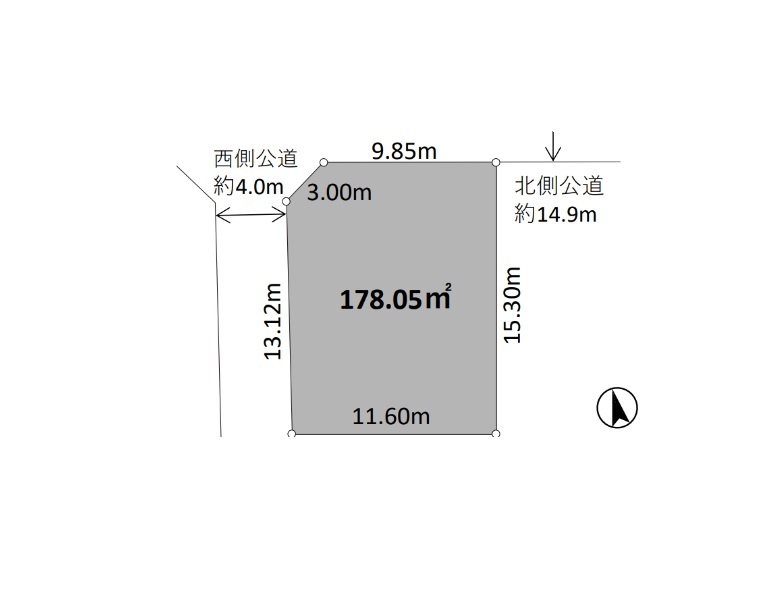 - 西側幅4.00mの公道に13.12m接道