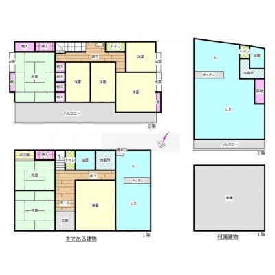 建物の階建 地上2階建 構造 木造 間取り 7DK以上 駐車場 あり接道状況 角地 - 南東側幅3.00mの公道に接道