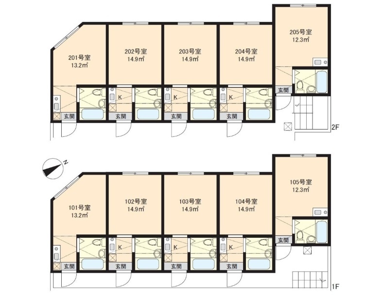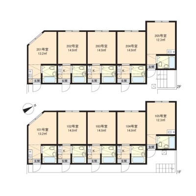 建物の階建 地上2階建 間取り 1K×10戸 駐車場 なし接道状況 角地 - 南西側幅12.40mの公道に5.30m接道