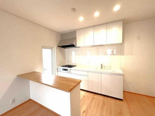 【リフォーム後】キッチンは背後にはカウンターのテーブルを設置