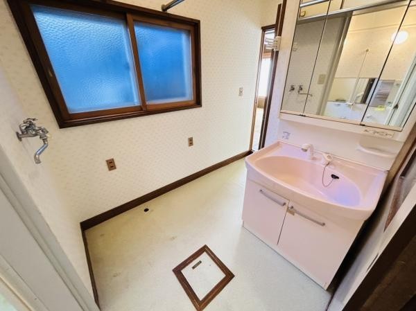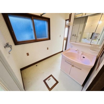 【リフォーム中】洗面所です。洗面化粧台も新品交換します。 ク