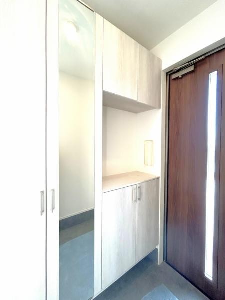 【リフォーム後】シューズボックスは鏡付きの新品を設置しました
