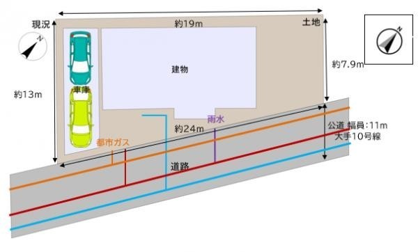 接道状況 一方 - 南東側幅11.00mの公道に接道