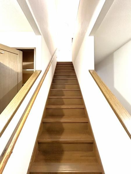 【現況】1階→2階階段 手摺がついているのは嬉しいですね。