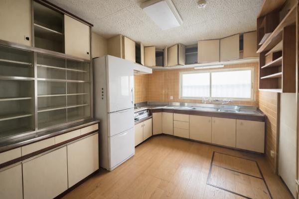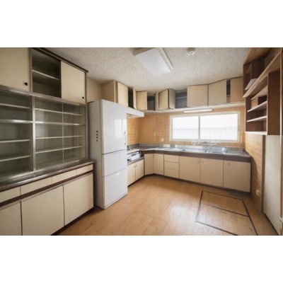 キッチン写真です。残置物は売主にて撤去します。