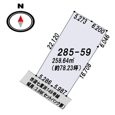 | 土地面積 | 258.64m² (78.23坪)(公簿)※セットバックが必要 |