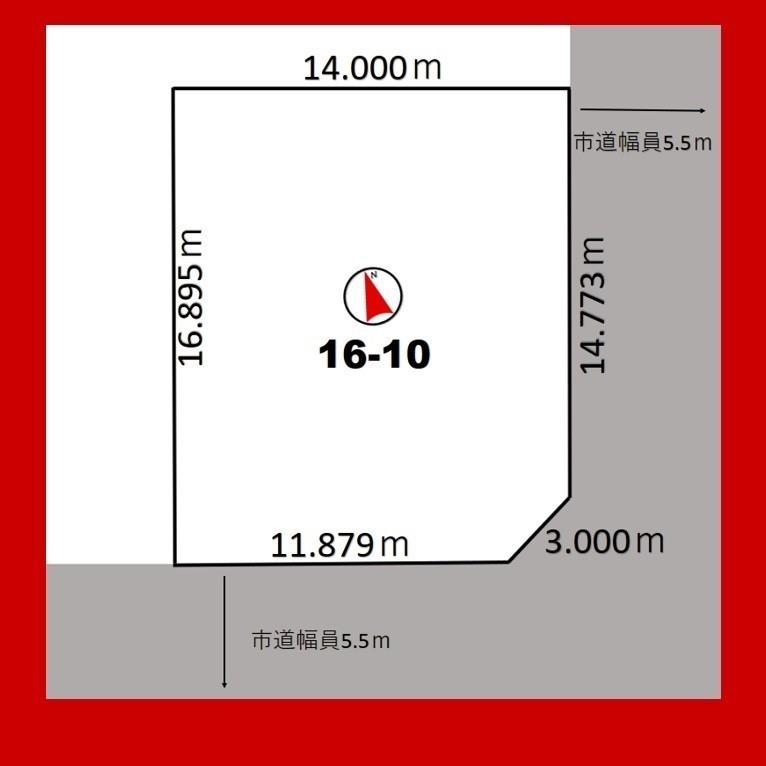 総区画数-/- 接道状況 角地 - 南東側幅5.50mの公道に14.77m接道