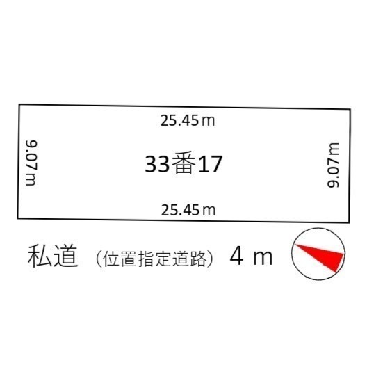総区画数-/- 接道状況 一方 - 南西側幅4.00mの私道に25.45m接道 位置指定:有