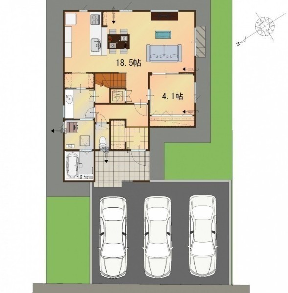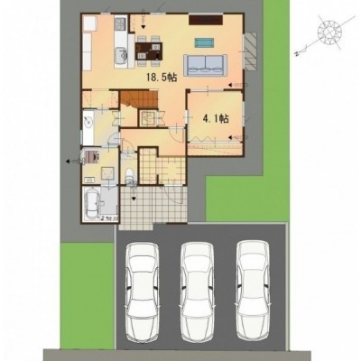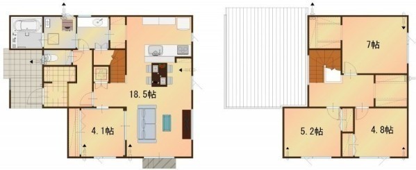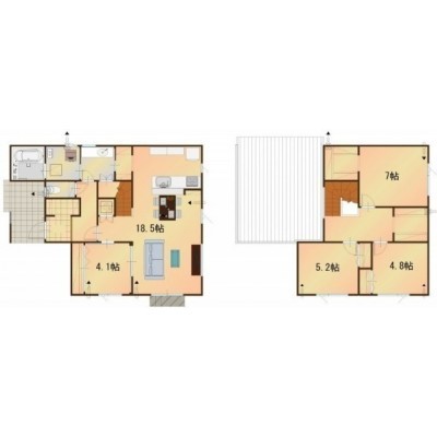 | 間取り | 4LDK1階:LDK18.5帖 洋室4.1帖 / 2階:洋室7帖 洋室5.2帖 洋室4.8帖 |