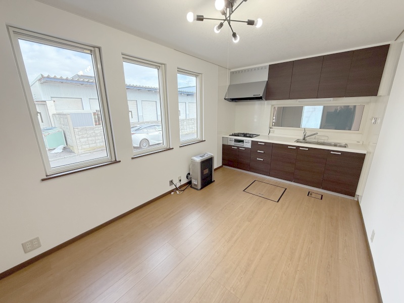 - 2026年1月頃に物件全体を部分的にリフォームしています。施工内容:2階システムキッチン設置、ユニットバス交換・洗面台交換・トイレ交換、エアコン(3台)設置、FFストーブ取付